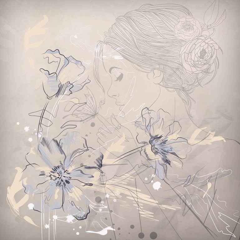 Наклейка "Девушка с маками"