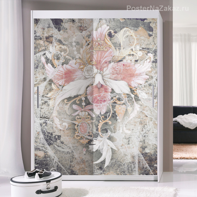 Наклейка с изображением королевской орхидеи на абстрактном фоне в акварельном стиле станет главным украшением вашей комнаты.