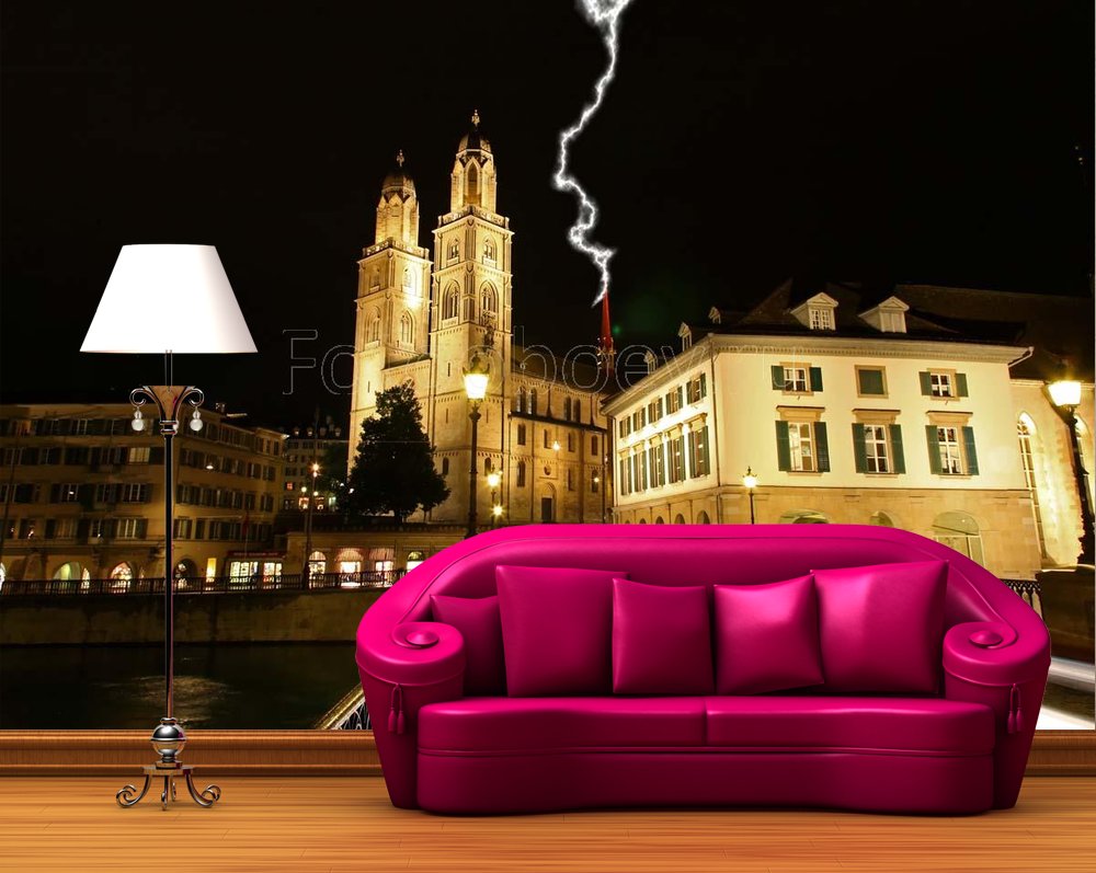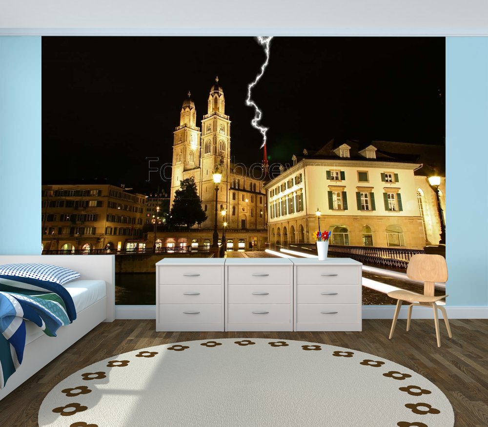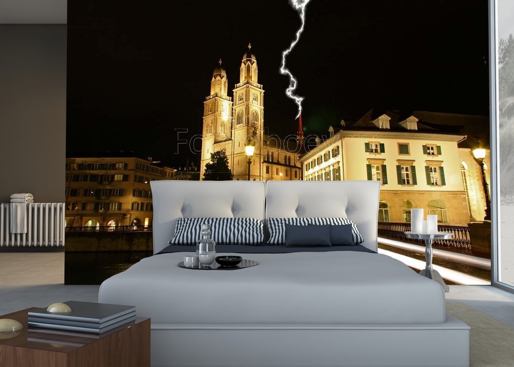 Фотообои "Кафедральный собор Цюриха (Гроссмюнстер) ночью"
