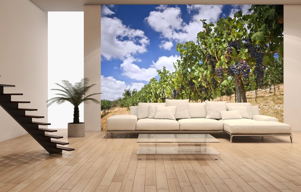 Флизелиновые фотообои с ПВХ-покрытием (виниловые фотообои на флизелиновой основе). Фактура  текстиль.Материал пожаробезопасен и может использоваться в помещениях с повышенными требованиями пожарной безопасности. Плотность фотообоев изготовленных из данного материала составляет : 175 гр/м²