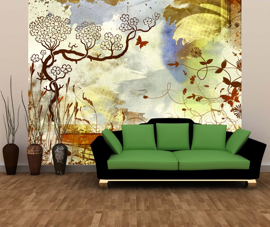 Флизелиновые фотообои с ПВХ-покрытием (виниловые фотообои на флизелиновой основе). Фактура  фреска.Материал пожаробезопасен и может использоваться в помещениях с повышенными требованиями пожарной безопасности. Плотность фотообоев изготовленных из данного материала составляет : 300 гр/м²