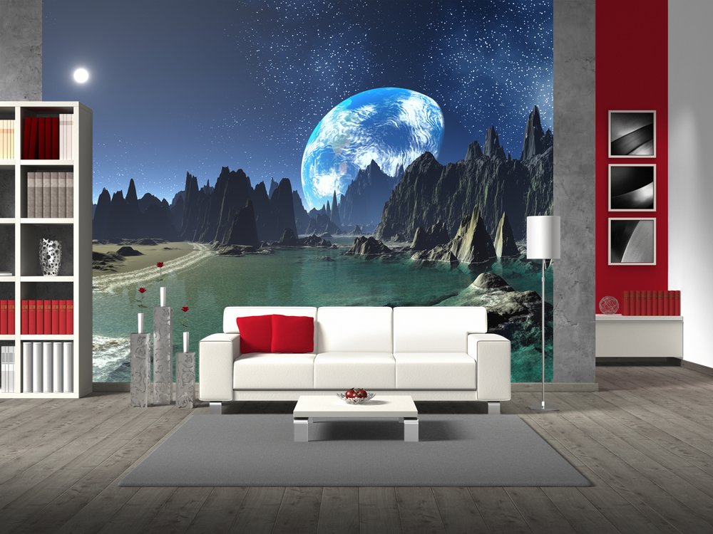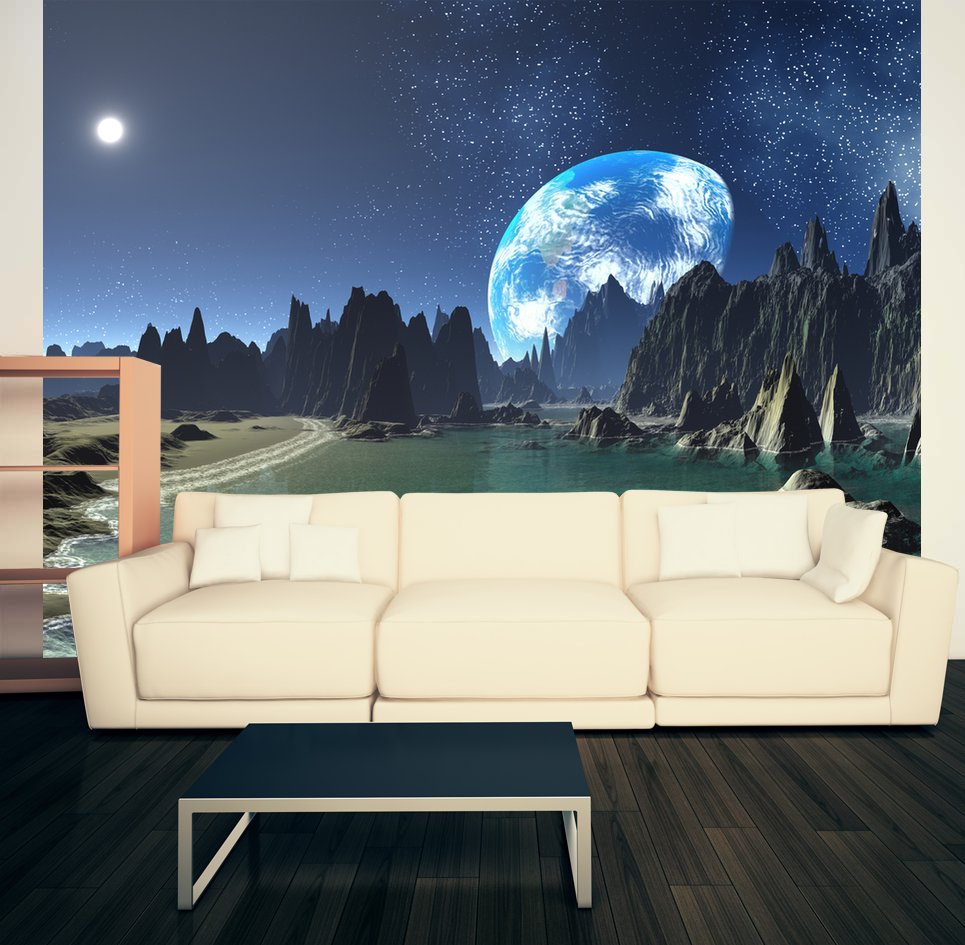 Флизелиновые фотообои с ПВХ-покрытием (виниловые фотообои на флизелиновой основе). Фактура  песок.Материал пожаробезопасен и может использоваться в помещениях с повышенными требованиями пожарной безопасности. Плотность фотообоев изготовленных из данного материала составляет : 250 гр/м²