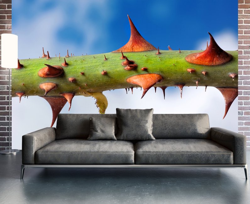 Обои печатаются на нескольких листах с белыми полями. Чтобы наклеить "стык в стык" необходимо самостоятельно отрезать белые поля.