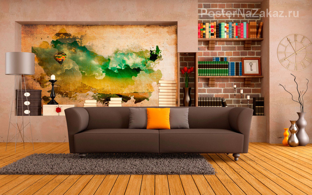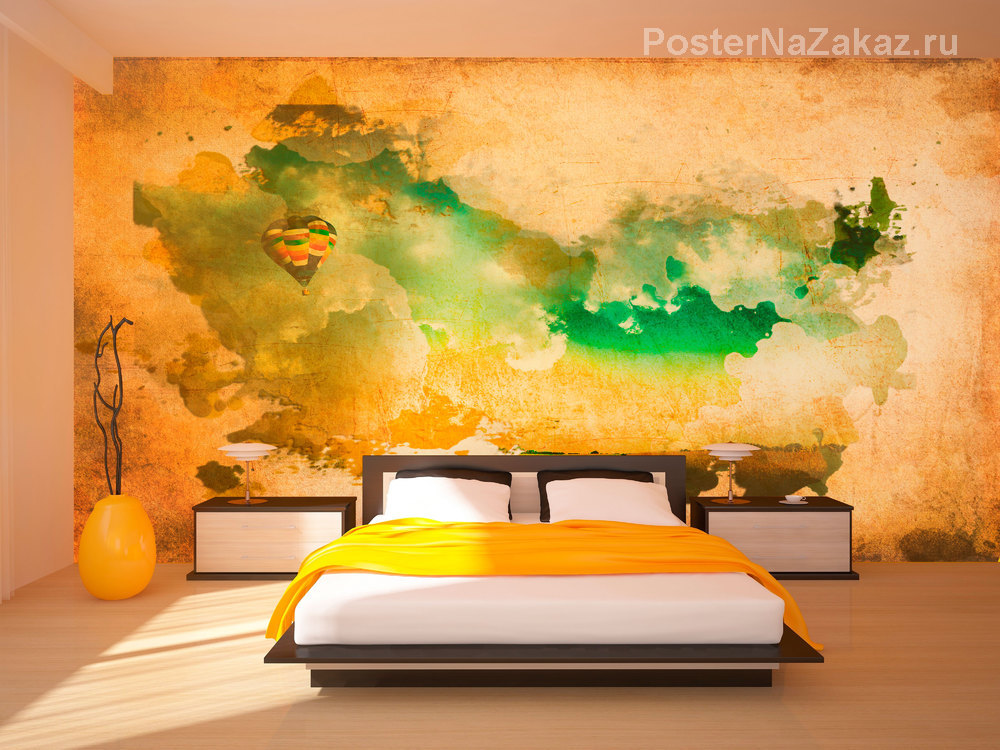 Абстрактный пейзаж с воздушным шаром, напоминающий карту отлично впишется в стиль "лофт" или станет приятным дополнением в Вашей гостиной.