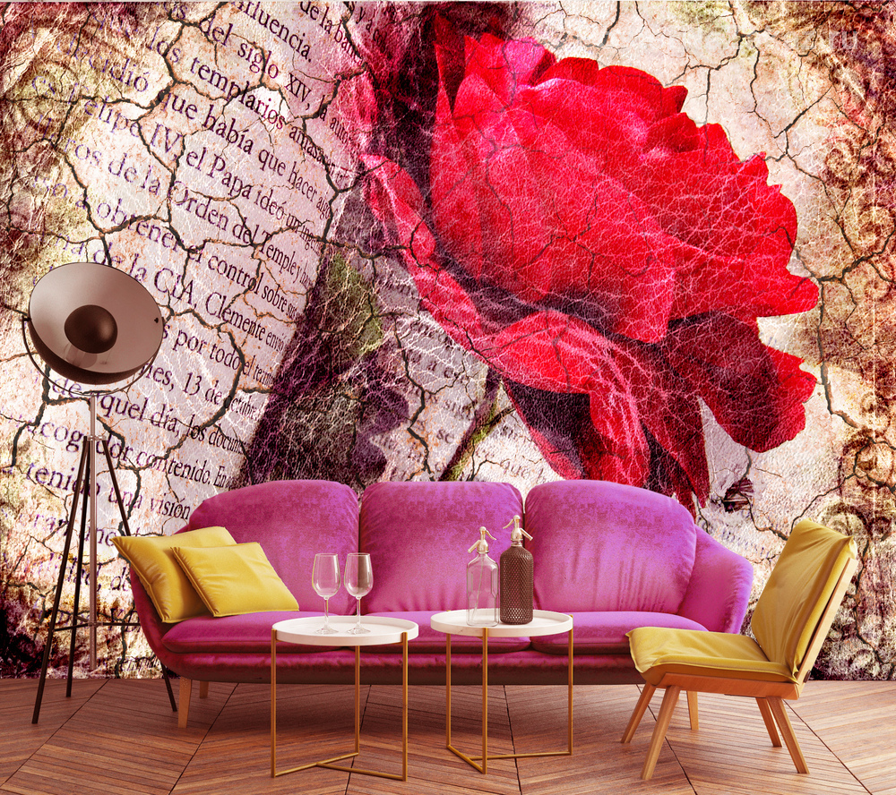 Фотообои с изображением розы на фоне старой книги прекрасное дополнение к оформлению Вашей комнаты. Подойдут для спальни, прихожей и зала.