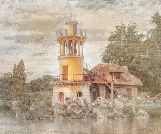 Фотообои с изображением винтажного пейзажа маяка у озера, отличное и интересное дополнение к оформлению Вашей комнаты.