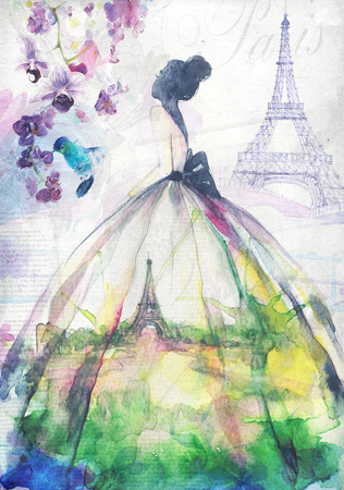 Изображение в интерьере прекрасной и нежной невесты из Парижа выполненной в акварельной технике украсит любую комнату.