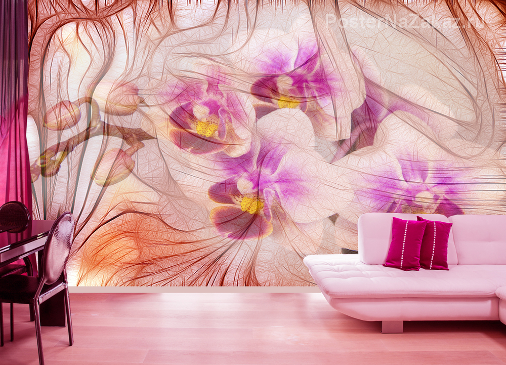 Фотообои с изображением цветущий ветви орхидеи на фоне абстракции, отличное и необычное оформление для вашей комнаты