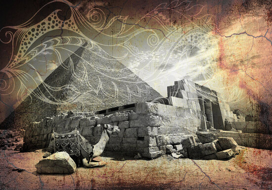 Египетские пирамиды в ретро стиле с этническими принтами очень хорошо впишется в офис или переговорную, а так же в спальню