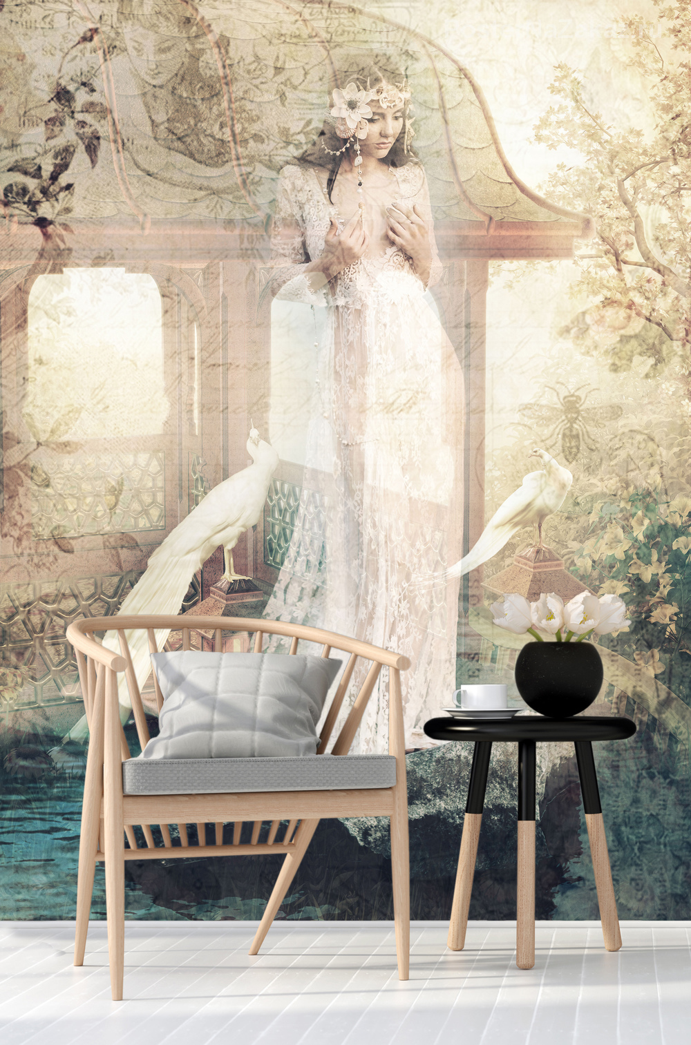 Изображение прекрасной лесной принцессы в ажурном платье в окружении сказочного леса украсит и дополнит интерьер вашей комнаты.