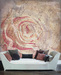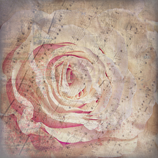 Фотообои с изображением кремовой розы крупным планом на фоне нот украсит любую комнату в нежных бежево-розовых тонах.