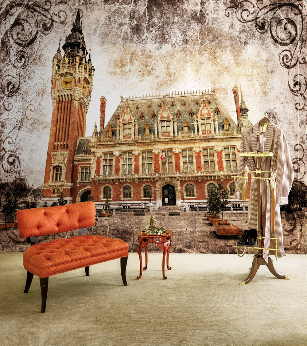 Изображение состаренной архитектуры добавит колорита комнате и ретро настроения. Подойдет как для гостиной и прихожей, так и для кабинетов.