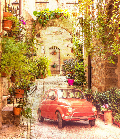 Фотообои с изображением ретро машины, на старинных испанских улочках, отличное и интересное дополнение к оформлению вашей комнаты