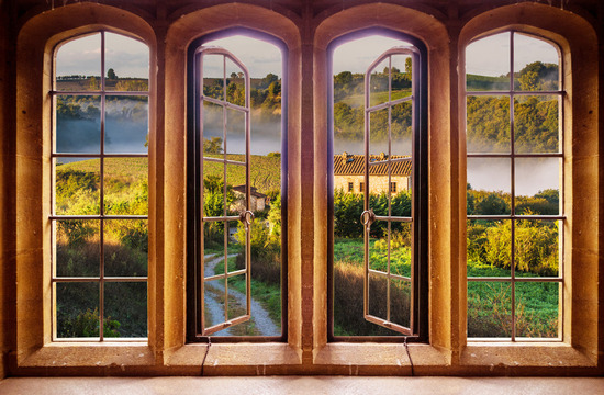 Фотообои с изображением деревенского пейзажа за окном, отличное и интересное дополнение к оформлению вашей комнаты