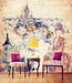 Фотообои с изображением улицы в Таллине с маленькими домами, прекрасной дамой и Александро-Невским собором в стиле рисунка от руки украсят и дополнят интерьер. Прекрасно подойдет для спальни и гостиной.