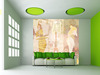 Флизелиновые фотообои с ПВХ-покрытием (виниловые фотообои на флизелиновой основе). Фактура  фреска.Материал пожаробезопасен и может использоваться в помещениях с повышенными требованиями пожарной безопасности. Плотность фотообоев изготовленных из данного материала составляет : 300 гр/м²