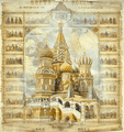Фотообои с изображением неповторимого Собора Василия Блаженного в Москве на фоне карты России 1866 года, выполненные в монохромном стиле украсят и дополнят интерьер. Прекрасно подойдет для спальни и гостиной.