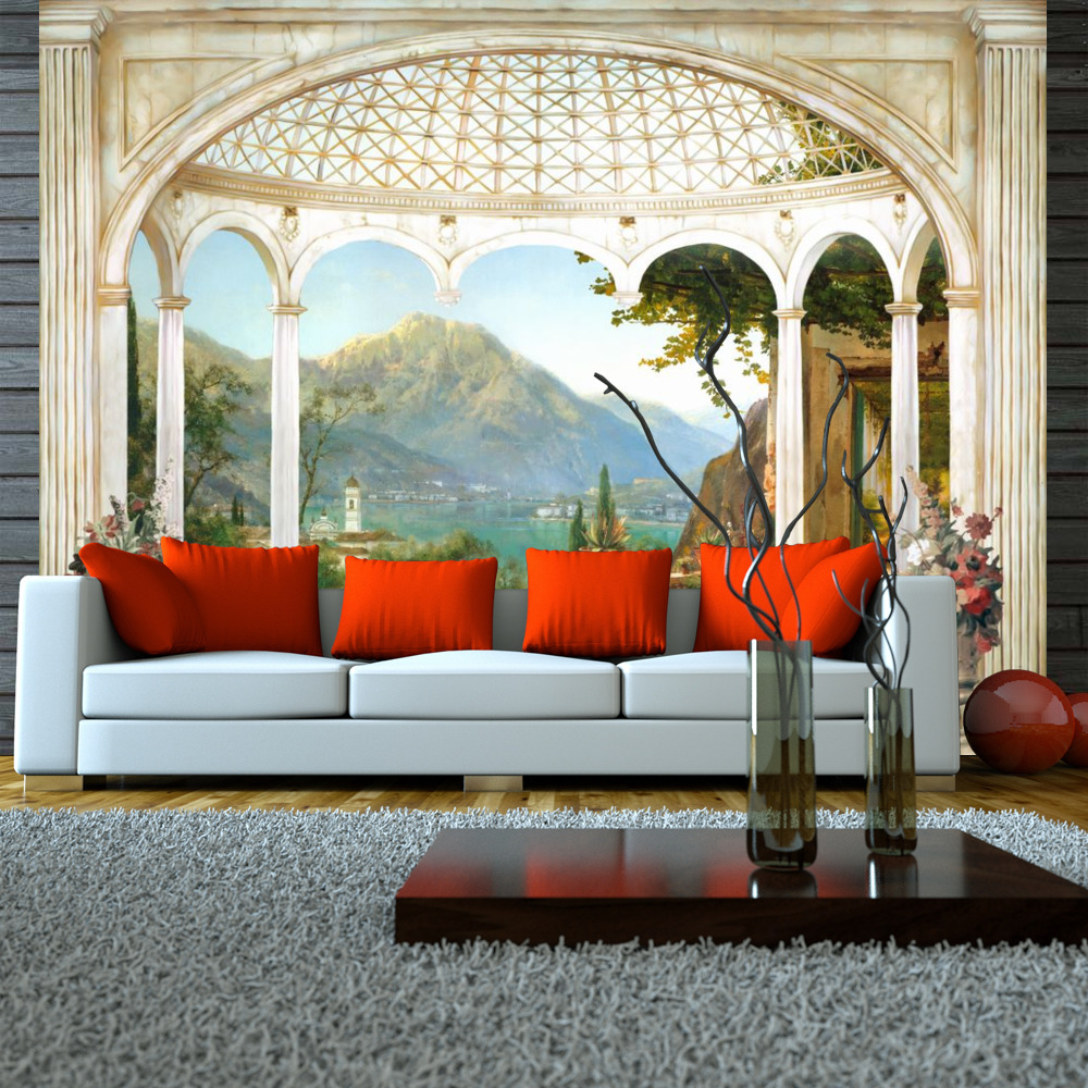 Флизелиновые фотообои с ПВХ-покрытием (виниловые фотообои на флизелиновой основе). Фактура  фреска.Материал пожаробезопасен и может использоваться в помещениях с повышенными требованиями пожарной безопасности. Плотность фотообоев изготовленных из данного материала составляет : 300 гр/м²