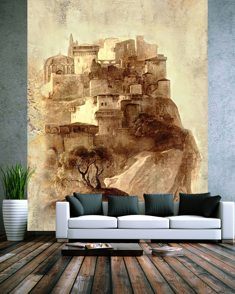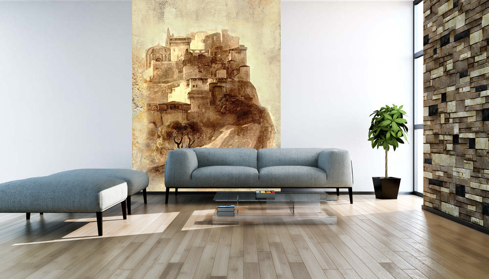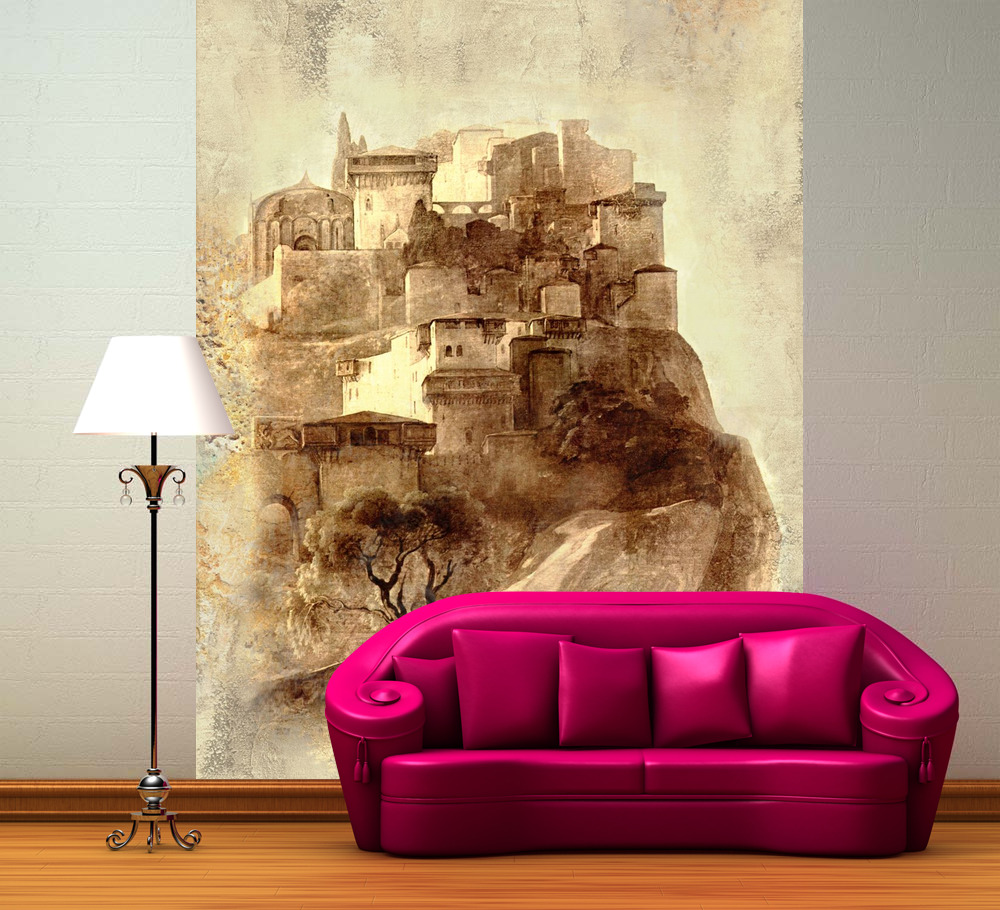 Флизелиновые фотообои с ПВХ-покрытием (виниловые фотообои на флизелиновой основе). Фактура  фреска.Материал пожаробезопасен и может использоваться в помещениях с повышенными требованиями пожарной безопасности. Плотность фотообоев изготовленных из данного материала составляет : 300 гр/м²