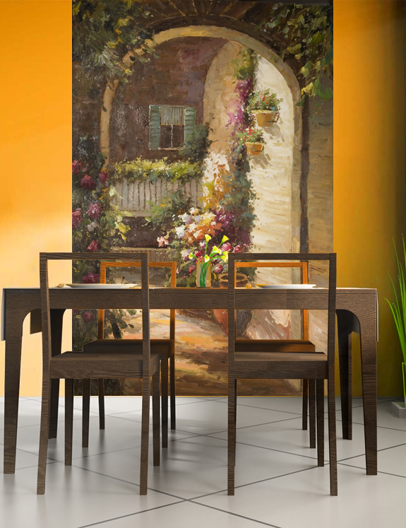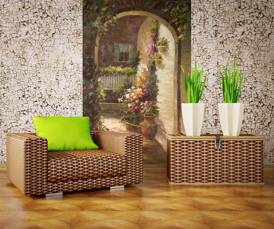 Флизелиновые фотообои с ПВХ-покрытием (виниловые фотообои на флизелиновой основе). Фактура  фреска.Материал пожаробезопасен и может использоваться в помещениях с повышенными требованиями пожарной безопасности. Плотность фотообоев изготовленных из данного материала составляет : 300 гр/м²