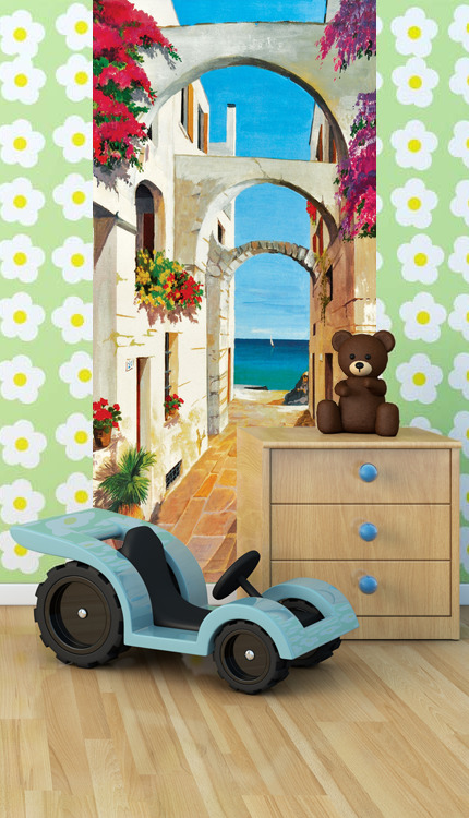 Флизелиновые фотообои с ПВХ-покрытием (виниловые фотообои на флизелиновой основе). Фактура  фреска.Материал пожаробезопасен и может использоваться в помещениях с повышенными требованиями пожарной безопасности. Плотность фотообоев изготовленных из данного материала составляет : 300 гр/м²